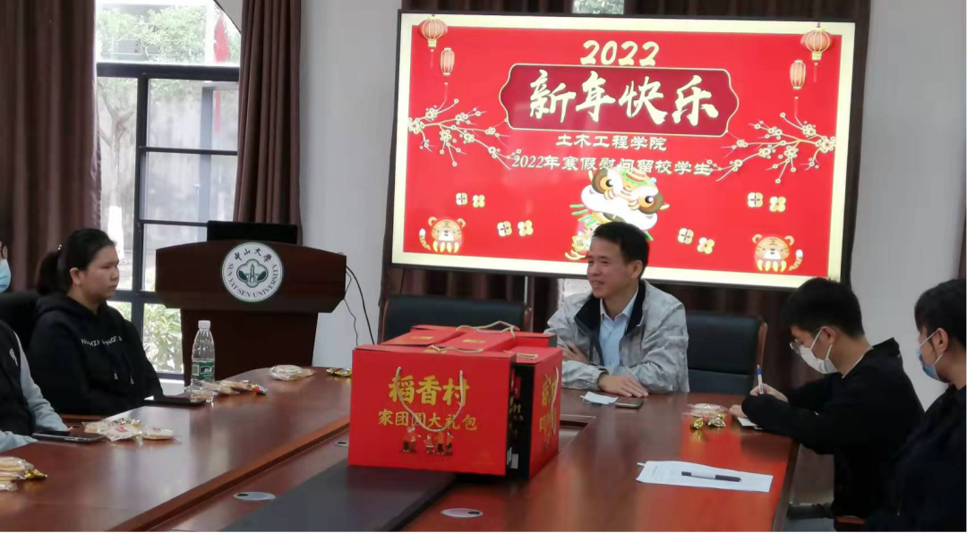 1月26日,伴随着温暖的阳光,我院在珠海校区海滨红楼6栋和广州南校园378栋会议室分别举行2022年留校学生新春慰问座谈会。学院党委曹新书记、殷敏副书记和青年教师专职辅导员孙伟助理教授以及50名本硕博留校学生在珠海校区座谈,座谈会由殷敏副书记主持。学院林凯荣副院长、青年教师专职辅导员董春雨副教授和10余名留校学生在广州南校园座谈,座谈会由董春雨老师主持。