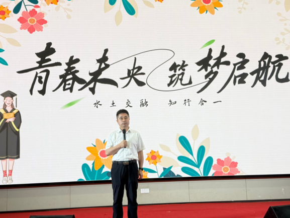 黄林冲常务副院长在晚会致辞中代表学院为毕业生们送上真挚祝福和殷切期望,希望同学们带着在土木大家庭的款款记忆沉淀为人生长河的点点微光,祝毕业生们前程似锦。