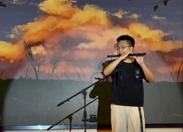 刘昱宏同学带来宛若天籁的《岁月神偷》,她以温暖的声音让毕业生们想起操场奔跑的风、图书馆翻书的响、实验室深夜的灯:原来岁月偷得走课时钟的滴答,却偷不走嵌在青春里的独家剪影。陈柏森同学以一曲悠扬的笛声,带领大家在《起风了》的旋律中畅想青春心事、美好回忆和对未来的期许。