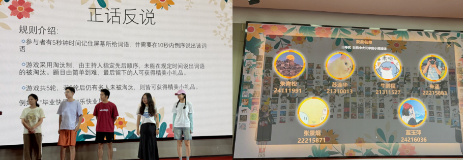 在歌曲《王妃》余韵中,第一个互动环节—“正话反说”挑战赛掀起脑力风暴:上台的5位选手将“毕业快乐”反念成“乐快业毕”...,在语言游戏中重温校园记忆。弹幕区同步涌来毕业祝福:愿你把人生写成永不褪色的毕业论文...大屏滚动的幸运号码揭晓了6位三等奖得主,让毕业季的惊喜与纪念在此刻共振。