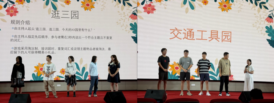 第二轮互动游戏热闹开场。主持人喊“动物园”,有人急着喊“树懒”“羊驼”,也有人一紧张冒出“萝卜”,逗乐全场,