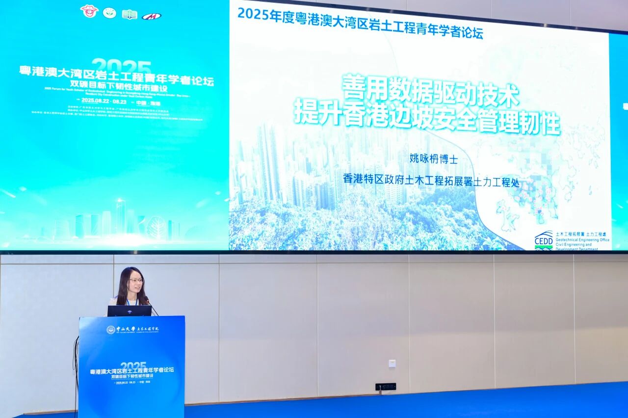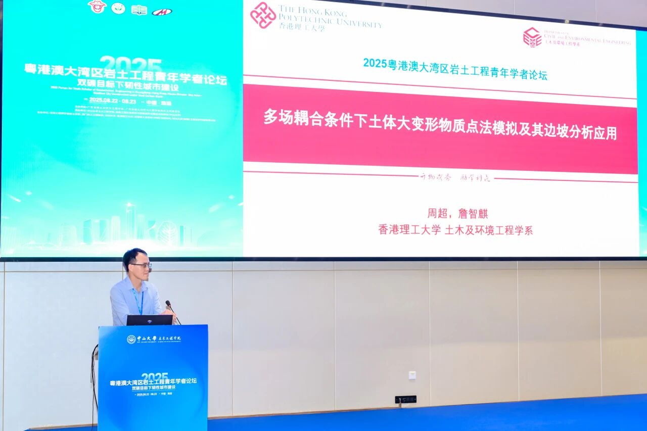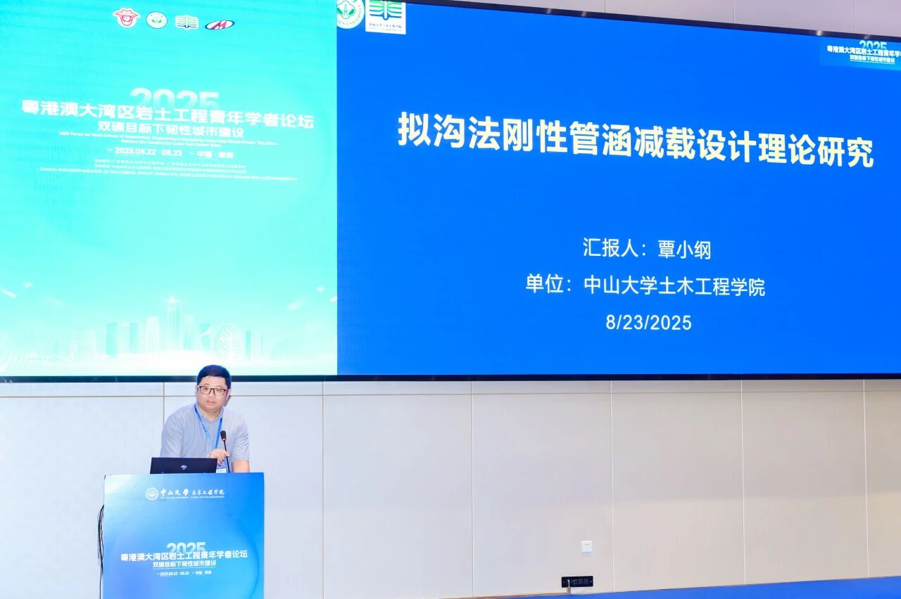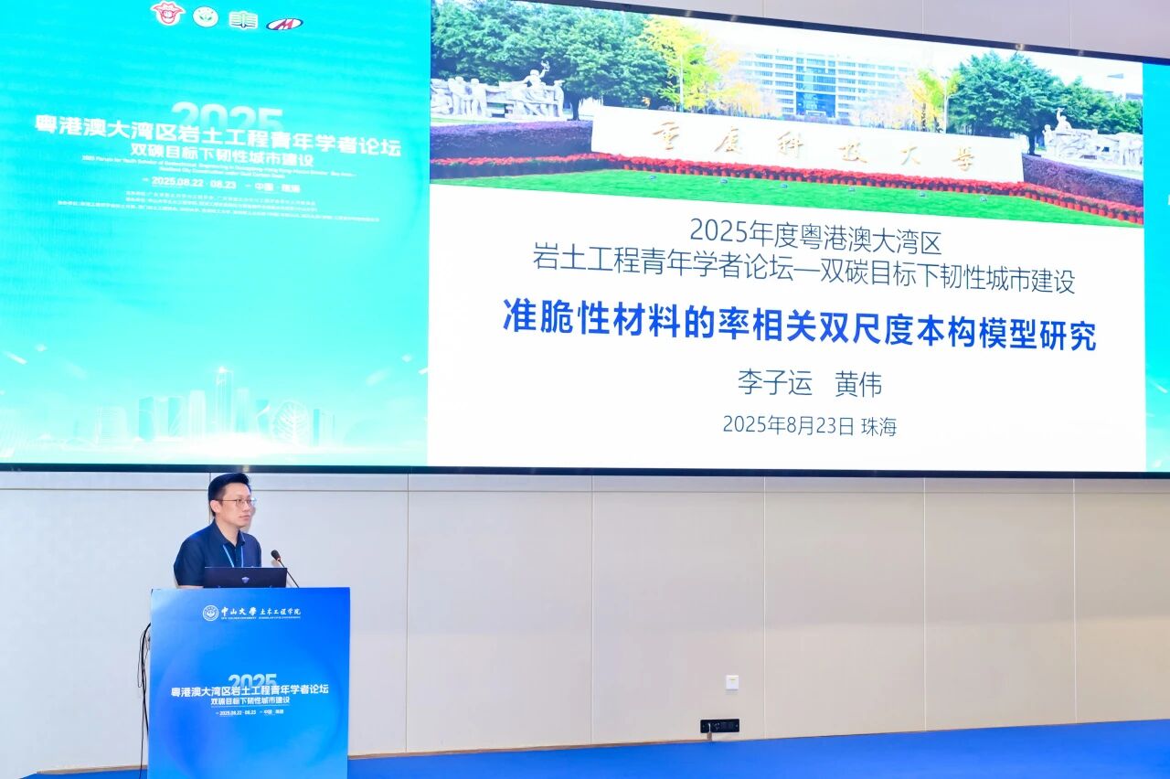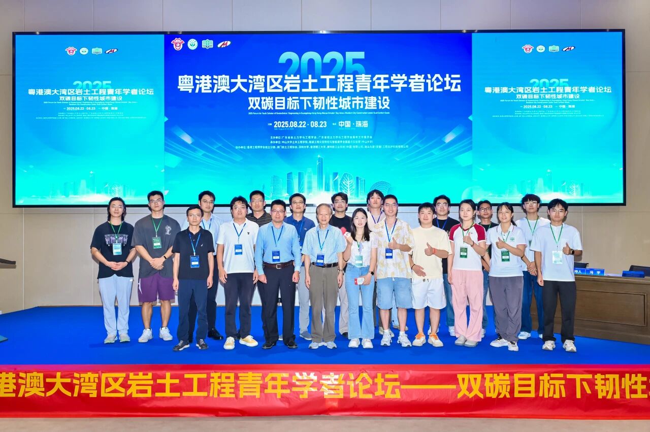 8月23日,由我院承办的“2025年度粤港澳大湾区岩土工程青年学者论坛”在珠海校区顺利举行。本次论坛以“双碳目标下韧性城市建设”为主题,在粤港澳大湾区工程师联合体、广东省工程师学会、香港工程师学会、澳门工程师学会的共同指导下,由广东省岩土力学与工程学会及其青年工作委员会主办,中山大学土木工程学院、隧道工程灾变防控与智能建养全国重点实验室(中山大学)联合承办,并得到香港工程师学会岩土分部、澳门岩土工程协会、深圳大学、香港理工大学、美特斯工业系统(中国)有限公司、瑞马丸建(安徽)工程支护科技有限公司等多家单位的协办支持。