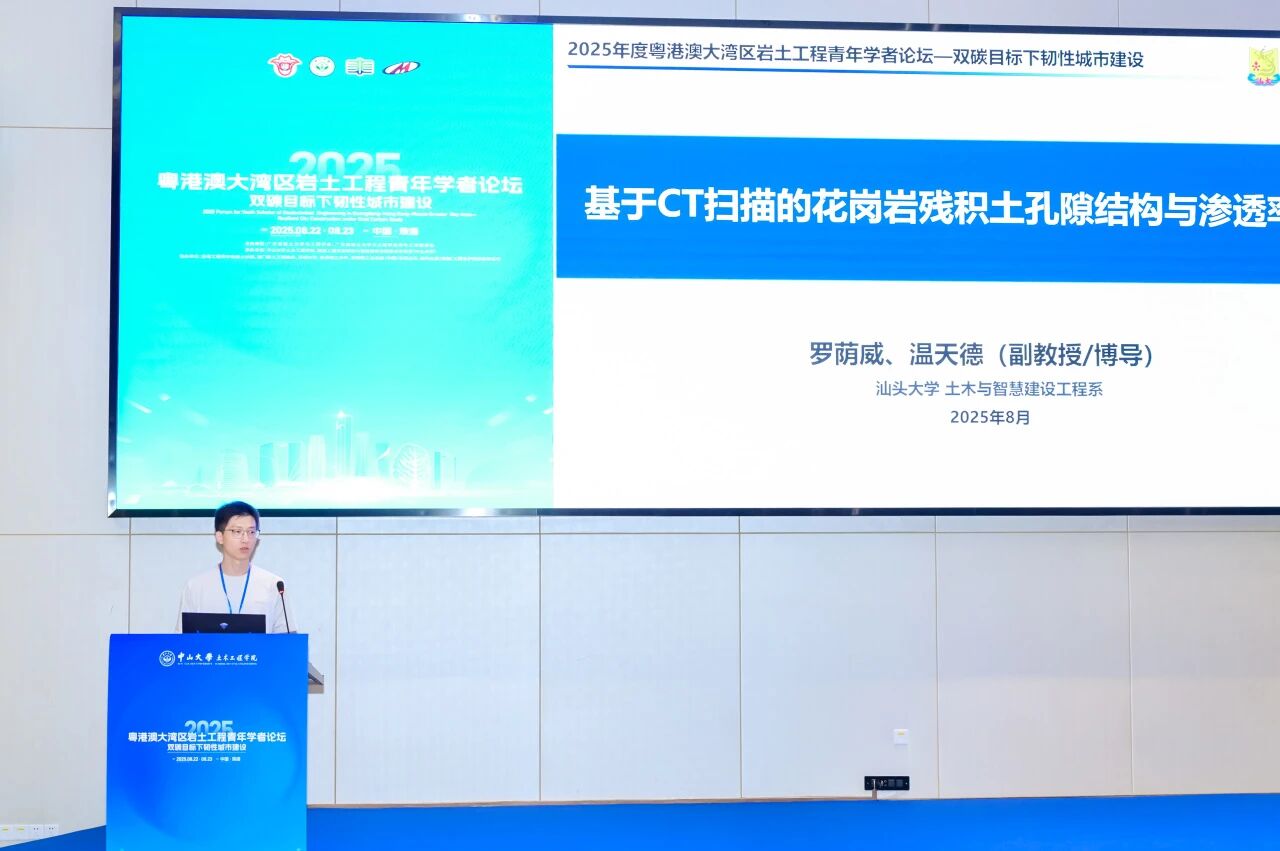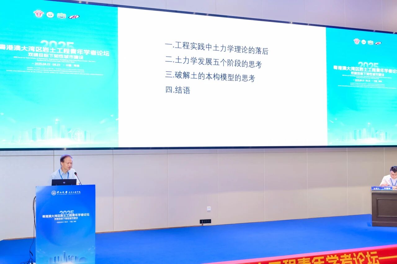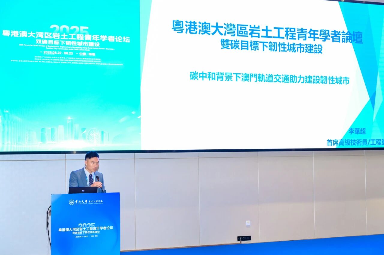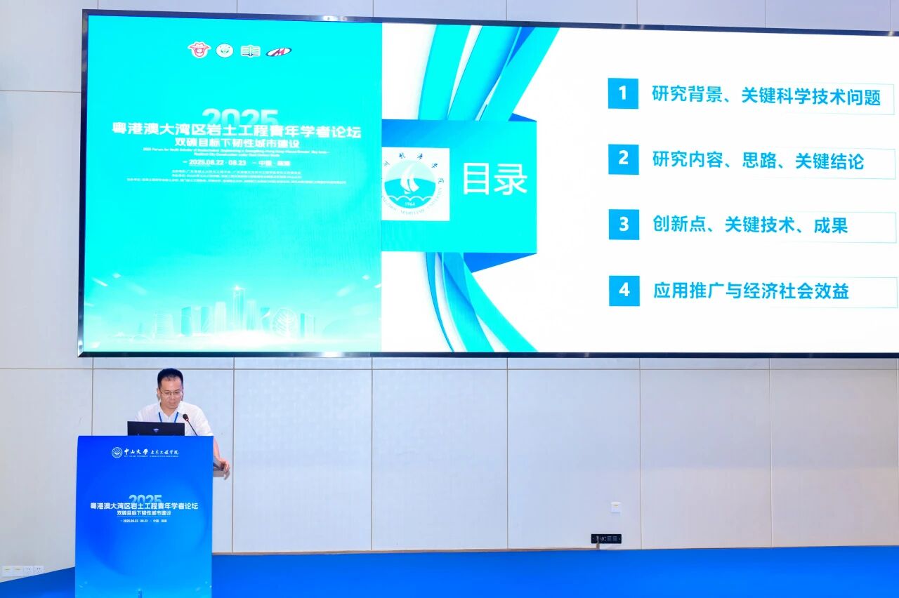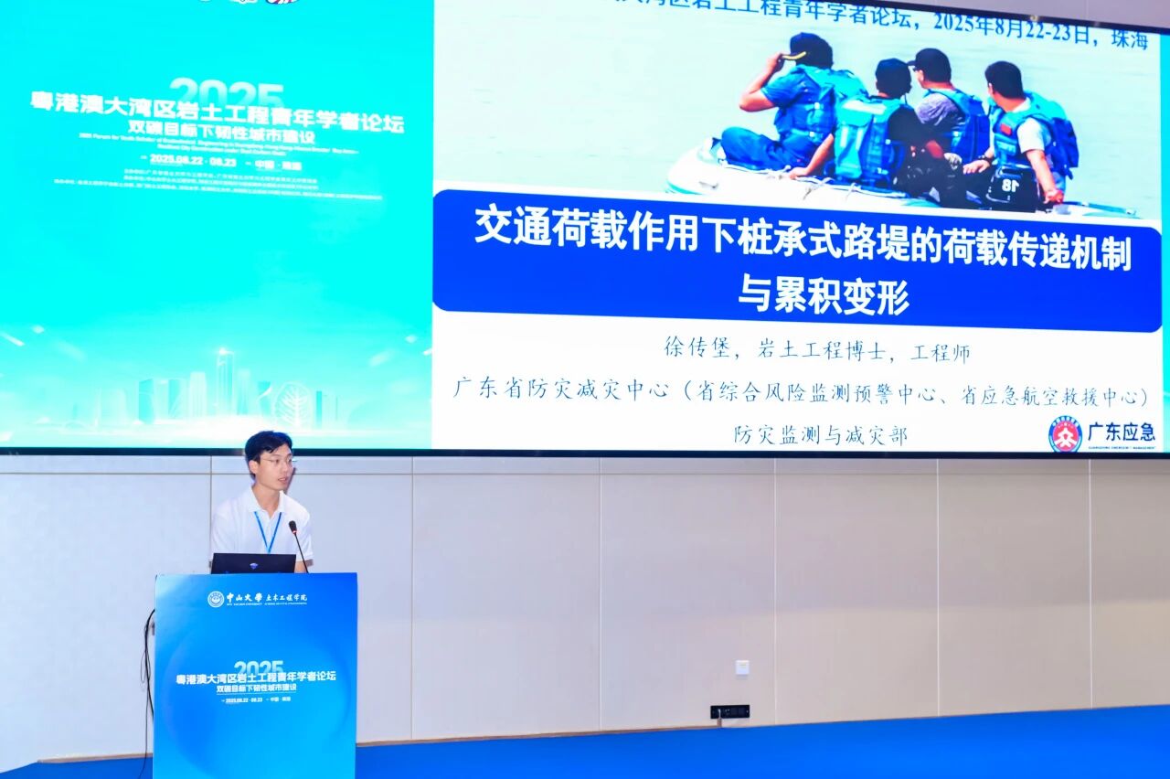 8月23日,由我院承办的“2025年度粤港澳大湾区岩土工程青年学者论坛”在珠海校区顺利举行。本次论坛以“双碳目标下韧性城市建设”为主题,在粤港澳大湾区工程师联合体、广东省工程师学会、香港工程师学会、澳门工程师学会的共同指导下,由广东省岩土力学与工程学会及其青年工作委员会主办,中山大学土木工程学院、隧道工程灾变防控与智能建养全国重点实验室(中山大学)联合承办,并得到香港工程师学会岩土分部、澳门岩土工程协会、深圳大学、香港理工大学、美特斯工业系统(中国)有限公司、瑞马丸建(安徽)工程支护科技有限公司等多家单位的协办支持。