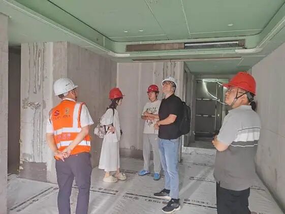 在深铁珑镜项目施工现场,张浩鑫高工带领师生进行实地考察。师生们认真了解墙体结构布置、材料应用等实际建设情况。通过张浩鑫高工和现场工作人员的详细讲解,师生们对住宅建设过程有了具体的认识,了解了房屋从规划到落成的关键环节。