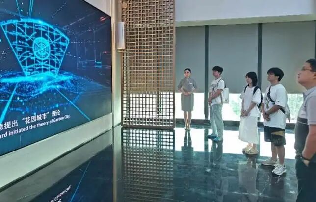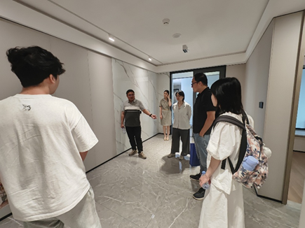 在深铁置业公司TOD城市规划展厅,师生们观看和了解了TOD系统介绍、公司“四位一体”的产业布局,以及深圳城市轨道交通部分重要线路。张浩鑫高级工程师(以下简称“高工”)介绍了公司在“好房子”建筑工业化体系方面的成果,包括智慧家居系统、墙体材料等关键技术,并带着大家现场体验,加深了解。