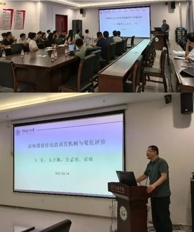 10月14日,应我院刘建坤教授邀请,中国海洋大学环境科学与工程学院教授、海底建设与保护山东省工程研究中心主任王栋教授来访我院,以“深海缓坡滑动的诱发机制与量化评价”为题作学术讲座。讲座由胡正副教授主持,我院戴北冰教授、马会环教授、赵红芬副教授、黄维副教授等约30名师生参加。