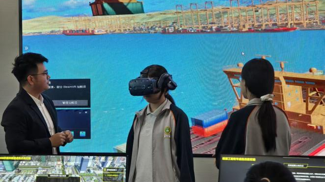 在公共教学楼的虚拟仿真与远程教学实验室,我院实验中心梁俊杰老师带领中学生们体验了土木工程专业虚拟仿真模型操作,直观感受了数字城市VR漫游的沉浸景观以及AR扫描的虚实结合魅力,让同学们感受到数字化技术在行业中的应用与发展。