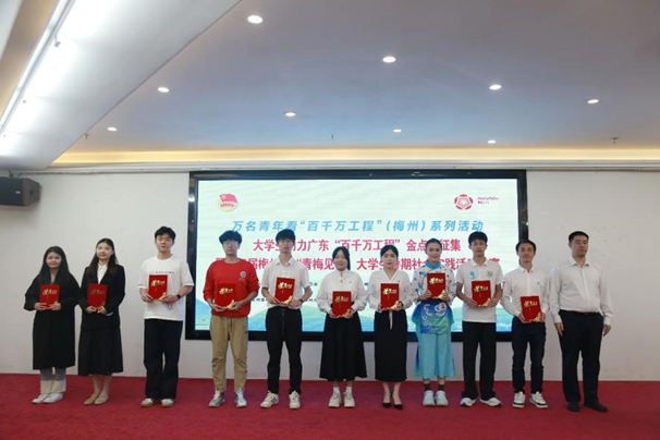 为深入学习贯彻党的二十届四中全会精神和习近平总书记在广东考察时的重要讲话精神,11月15-16日,由共青团梅州市委员会、梅州市“百千万工程”指挥部办公室、梅州市教育局等单位共同承办的大学生助力广东“百千万工程”金点子征集暨第三届梅州市“青梅见研”大学生暑期社会实践活动决赛在梅州市落下帷幕。我院“知行梅州,绿美水库”兴宁实践队提交的项目设计方案《AI赋能绿美水库,水利兴“宁”焕新乡村》从200余份作品中脱颖而出入围决赛。经过现场路演及答辩等环节的激烈角逐,荣获“金点子”荣誉!