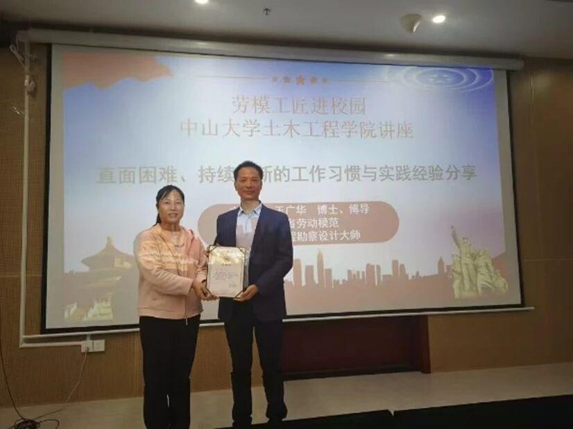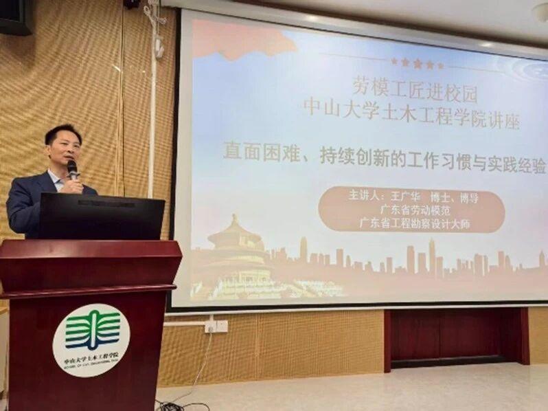 11月28日下午,我院在珠海校区海琴1号举办了“劳模进校园”讲座。特邀广东省劳动模范、广东省工程勘察设计大师、广州市市政工程设计研究总院有限公司副总经理王广华教授级高工前来我院,以“直面困难、持续创新的工作习惯与实践经验”为题进行分享。学院党委殷敏副书记主持,院团委麦伟立书记和40名学生参加。